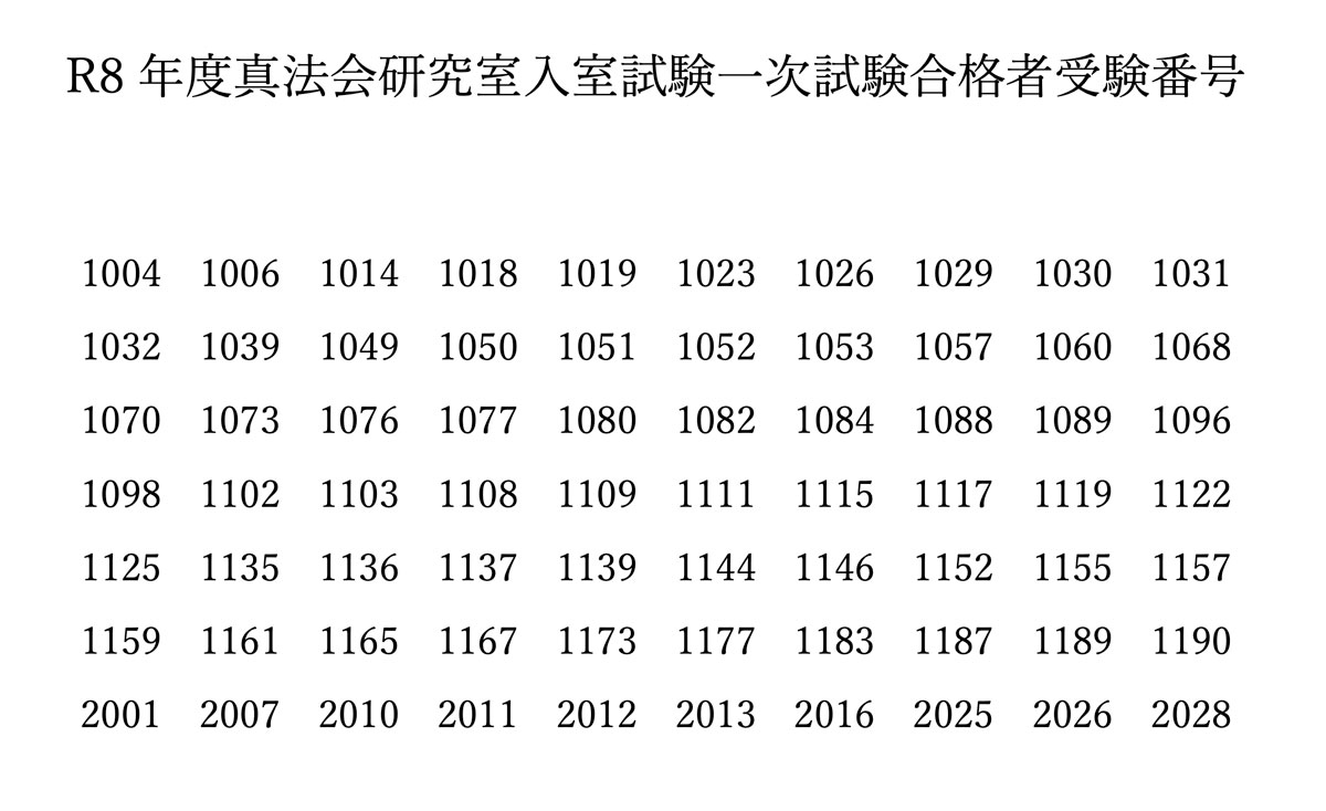 令和8年度 真法会研究室 一次試験合格者を発表いたします。